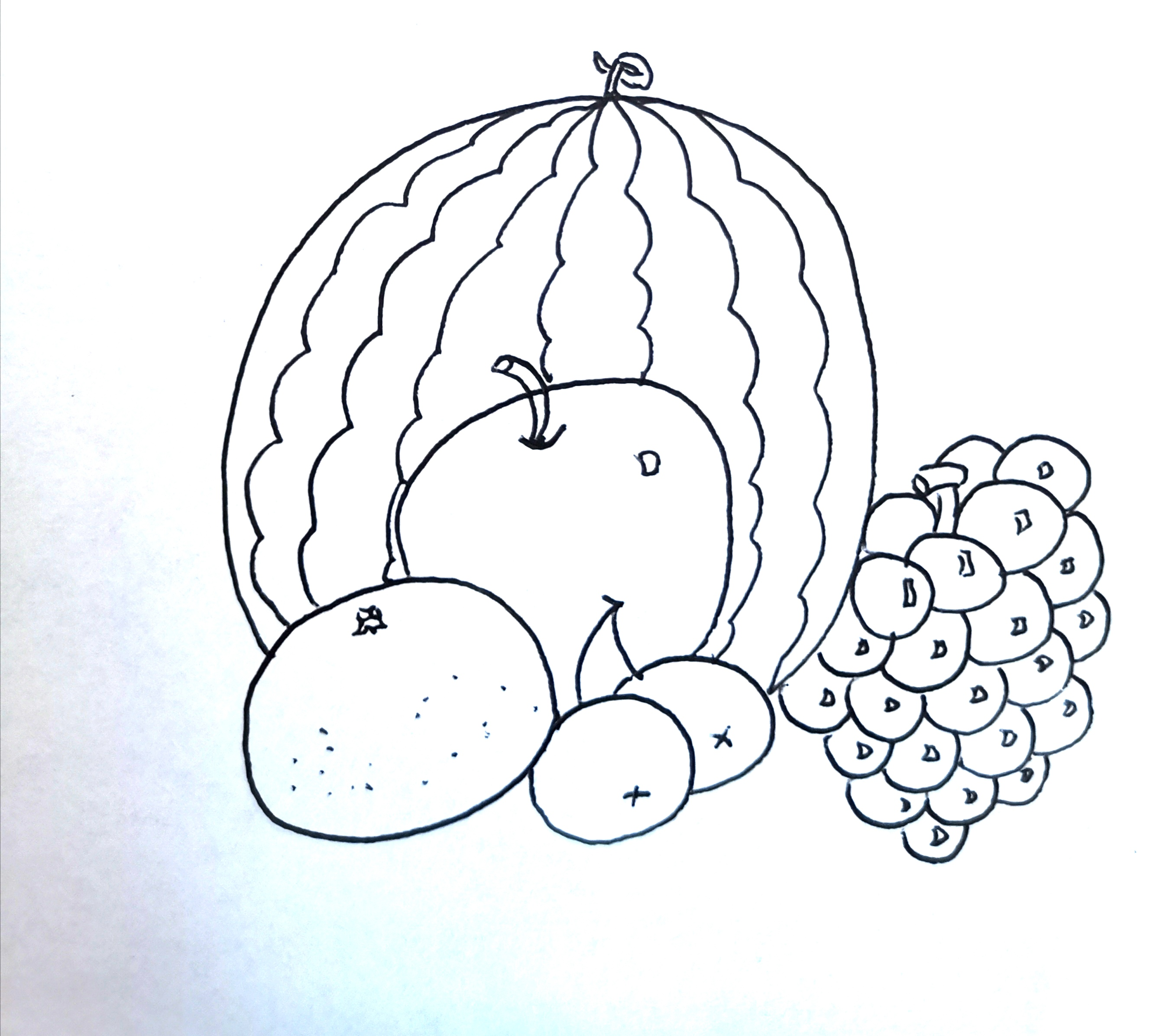 简笔画的内容包罗万象,在作画时一般要从整体入手。先概括基本型,画出大轮廓,然后再添加小结构。先画出物体的主要内容,后画次要内容。先强调主要特征,后补充其他结构特征。先抓住物体大的形体特征,再添画细节特征,从整体到局部的作画步骤。