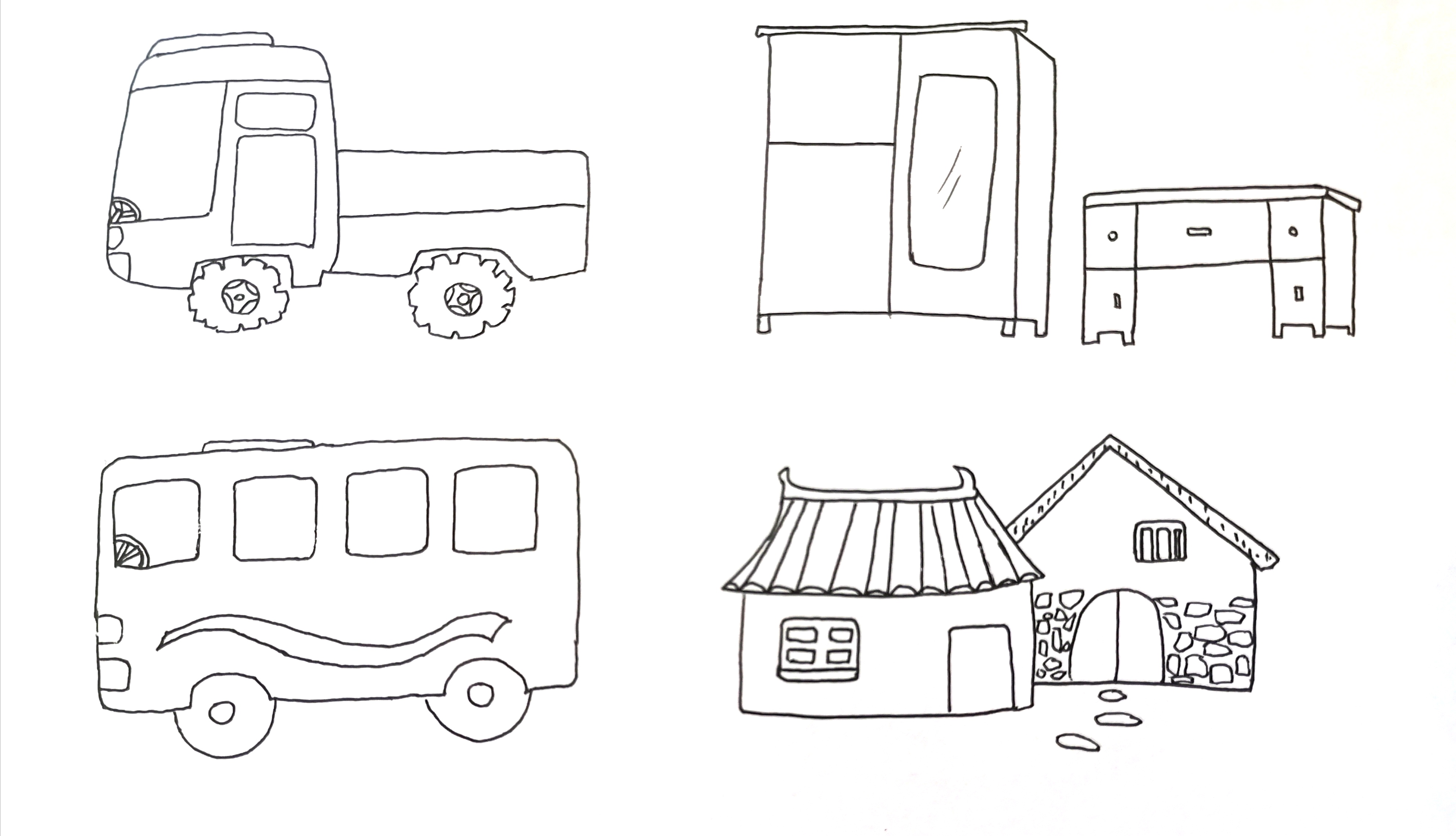 简笔画是平面化的,因此它只能表现物体的一个面。选择能充分显示对象结构特征又适宜表现的角度。不同的物体特征在不同的角度显示。如房屋建筑、日常家具、家电适合正面表现,交通工具及动物适合侧面表现。物体表现的角度不是固定的,有些物体可以从不同或多个角度来进行表现不同的结构特征。如动物可以正面也可以侧面来表现。昆虫类适合正面,鱼类适合侧面。有些动物头部是正面,身体是侧面。因此在选择物体的绘画角度时,要灵活思考,选择最佳角度或者从多个角度,来最大限度的表现出物体的主要特征。