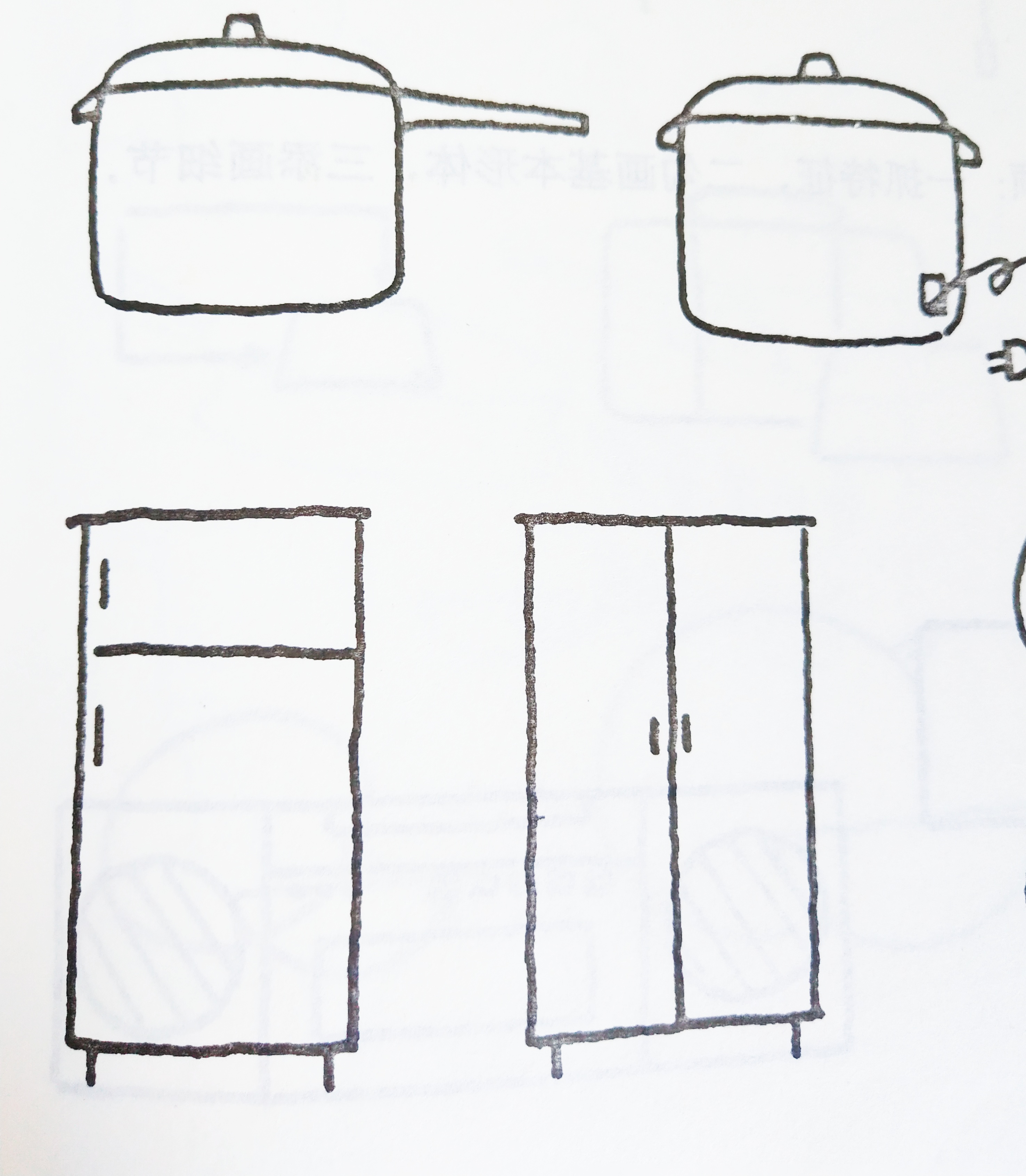 2.学习常见静物(蔬果食品、衣服帽饰、家电家具及交通工具)的简笔画法。
