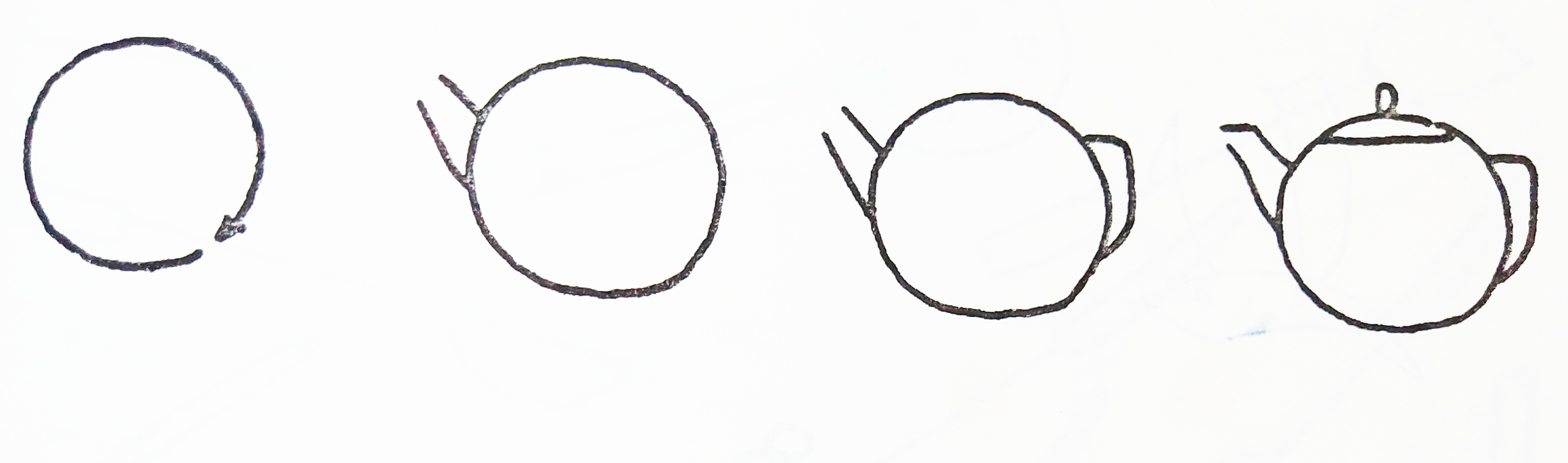 步骤一:观察分析,观察茶壶的大的形状特征,分析茶壶有哪些主要的结构。