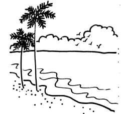(1)取景,风景简笔画要对客观存在的景象进行提炼取舍,从立意出发表达绘画的意境和主题。画风景简笔画时,取景视野要开阔,要根据立意的不同,大胆取舍,对景物进行选择,从而做到既表现主题,营造意境,又不失真实。如海边景色可取景沙滩、海面及远处的天空。