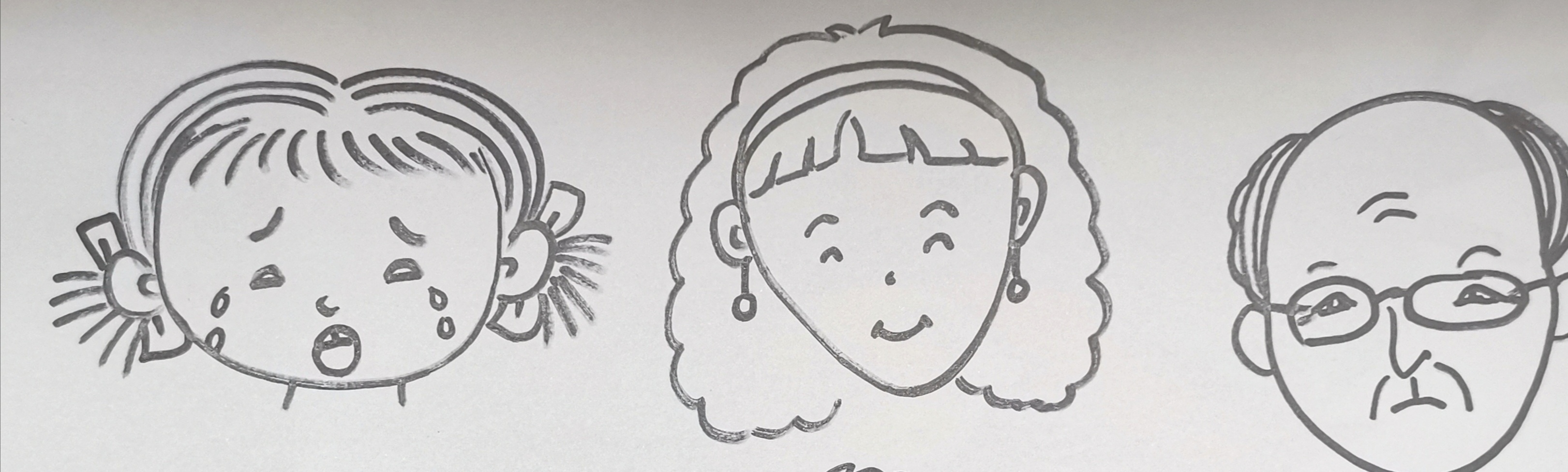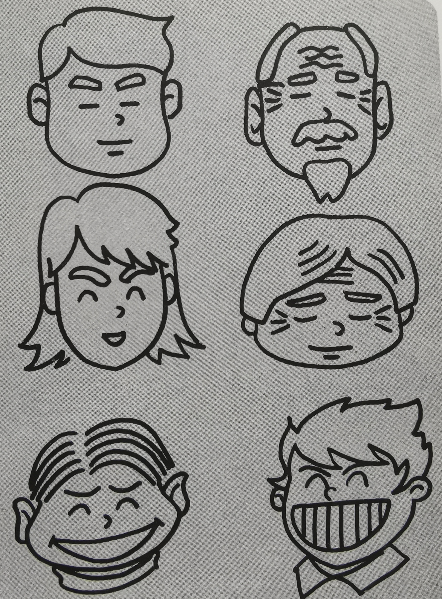 步骤三:添画人物的五官,要根据性别、年龄的不同,表现出人物的不同表情变化。