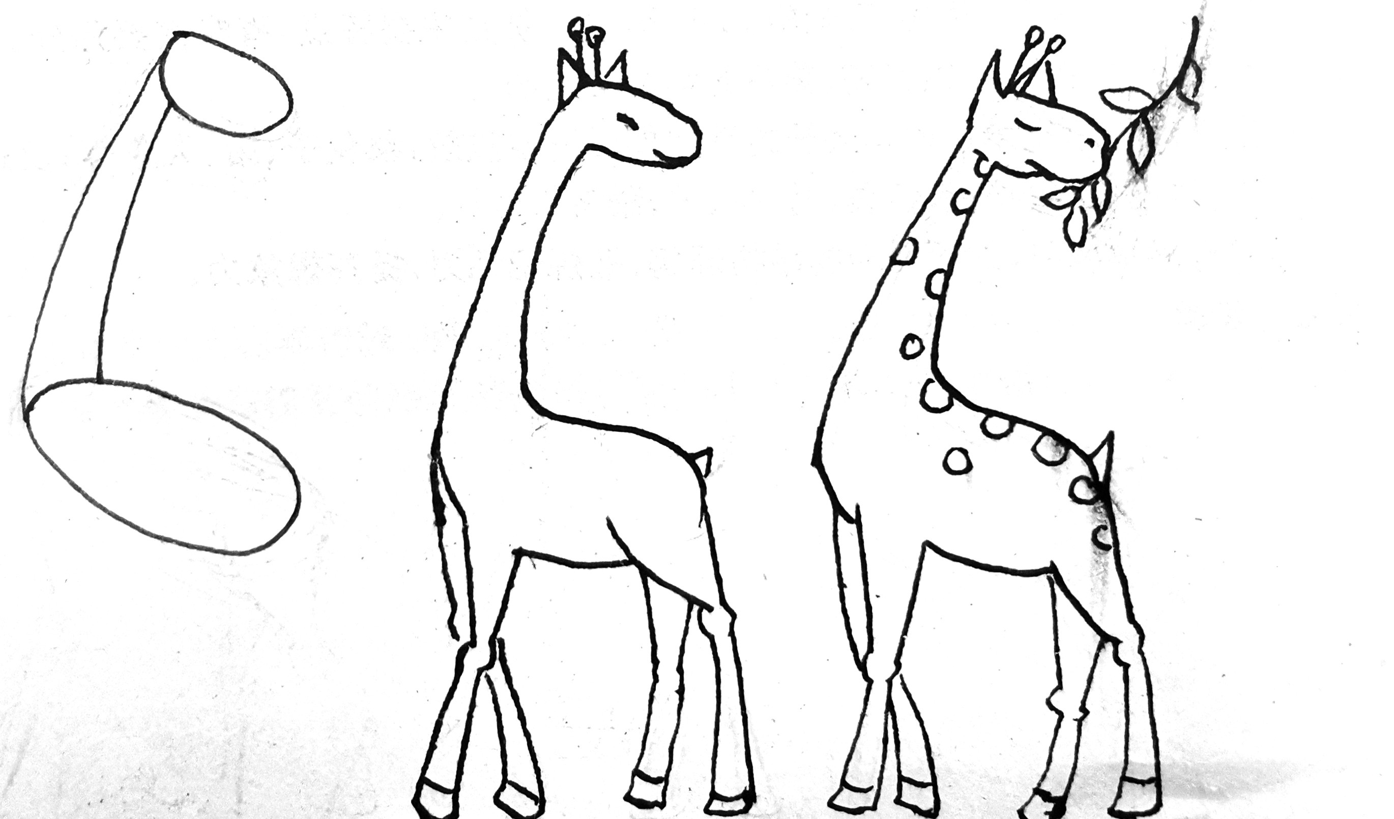 步骤二:用基本形概括出长颈鹿的主要形体结构。