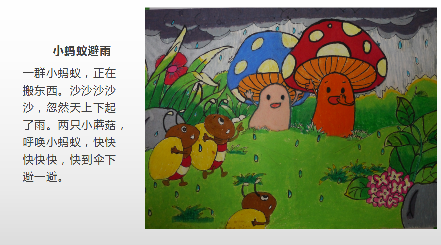 总之,儿歌图画创作要主题明确,形象突出,背景简明,适合幼儿欣赏。
