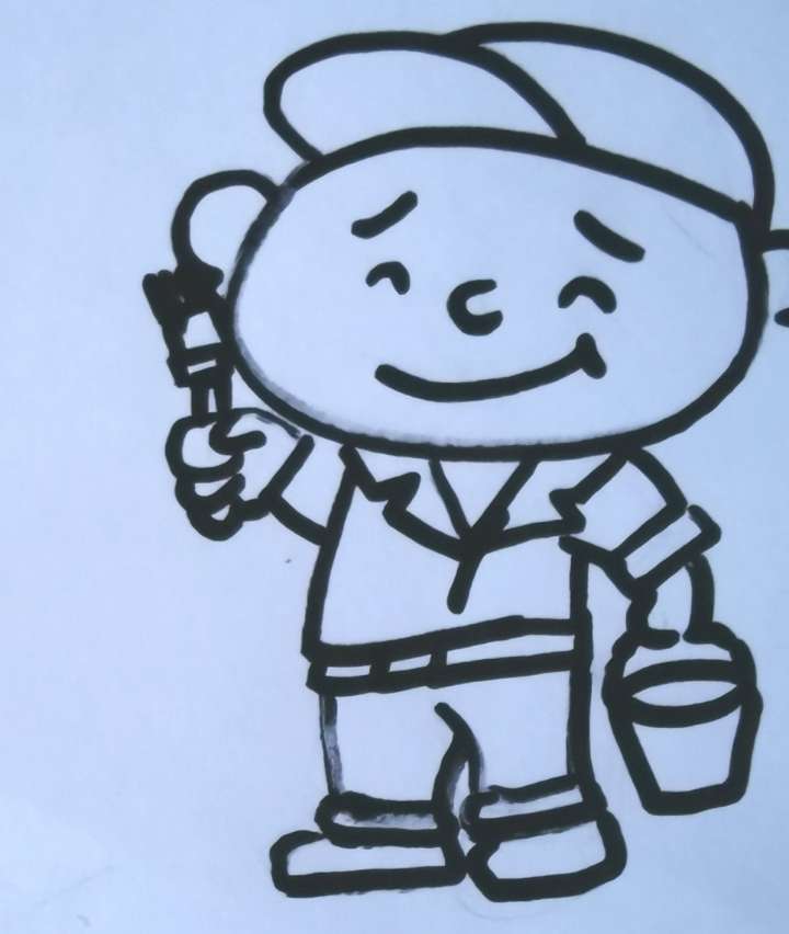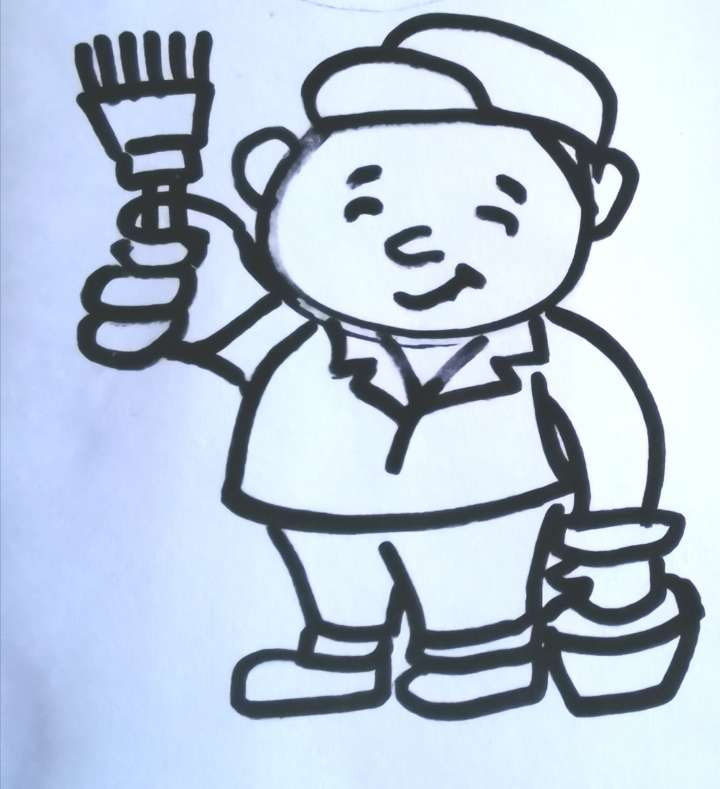 步骤四:添画细节特征,使人物形象更丰富、生动。如添画手中道具,给老人添画眼镜、拐杖,给小孩添画玩具等。