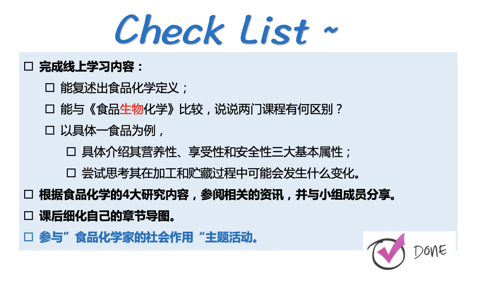 最初:食品生物化学,20世纪80年代:食品化学。食品化学教学内容基本上分理论和实验两部分。