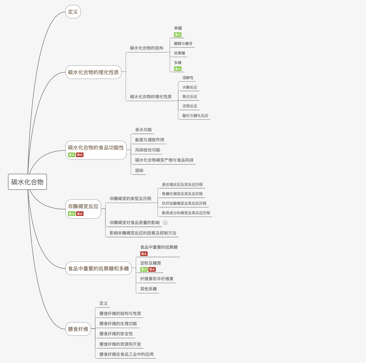 碳水化合物对食品的营养、色泽、口感、质构及某些食品功能等都有密切关系。