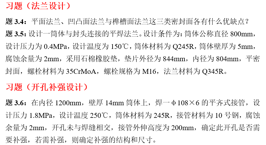 第1题为平面法兰、凹凸面法兰与榫槽面法兰三类密封面的优缺点,上交作业的同学中除了1人未上传答案,其余同学都能够答对;第2题为法兰设计,大部分同学都能够按照习题册上例题的设计步骤进行设计,部分同学设计时没有进行法兰刚度的校核,部分同学因为查阅到的参数与GB150-2011中的数值不同,最后的计算结果有所偏差。