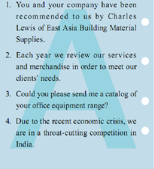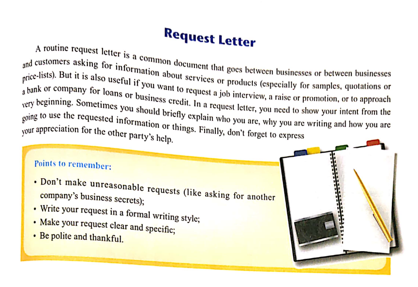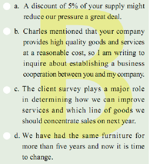 Task 2 Rearrange the order (重新排列顺序)of the following sentences and combine them into the body part of the request letter.