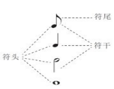 在乐谱中,记录音持续时间长短的符号,叫做音符。音符由符头、符干和符尾组成。
