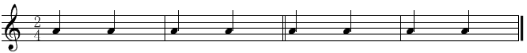 音乐作品明显分段处的复纵线(两条细线)叫做段落线,表示乐曲段落的结束。