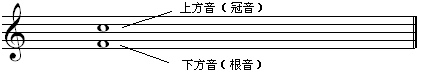 在乐音体系中,两个乐音之间的音的高低关系(或音高距离)称为音程。音程中的两个音,高的音称为“上方音”或称为“冠音”,低的音称为“下方音”或 称为“根音”。