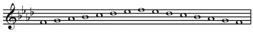与和声小调相比,旋律小调音阶没有了增二度音程。在上行时,I-VI、I-VII 出现了大六度、大七度音程,所以旋律小调包含了部分大调元素。