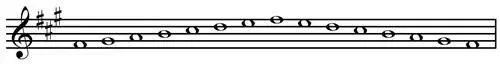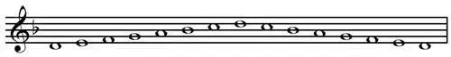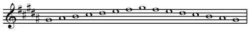 在自然小调音阶上行时升高VI、VII级音,下行时还原,就构成了旋律小调的上下行音阶。旋律小调升高的两个音级一般只在上行时使用,下行升高VI、VII级音的情况很少出现。升高VI、VII级音的变音记号不能加入调号,必须使用临时升降记号,以便于区分。