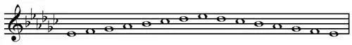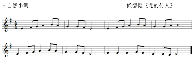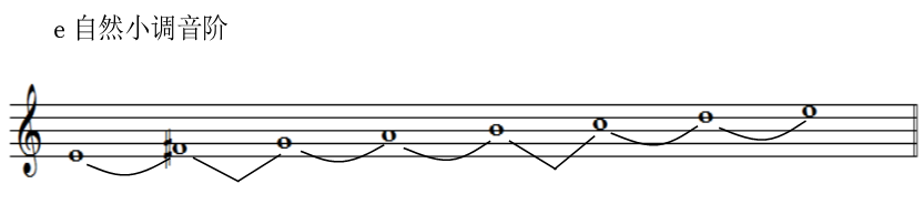 a自然小调音阶可以在基本音级上自然构成,无变音记号,最为简洁,因此被作为自然小调的基础模型。任何一个音都可以做为主音来构成自然小调,只要能够符合自然小调音阶中各音级的关系即可。比如将e做主音构成的e自然小调:
