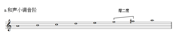 和声小调的特性音程为VI级音与VII级音之间的增二度,此音程极大丰富了调式的表现力,使和声小调更具小调特色。