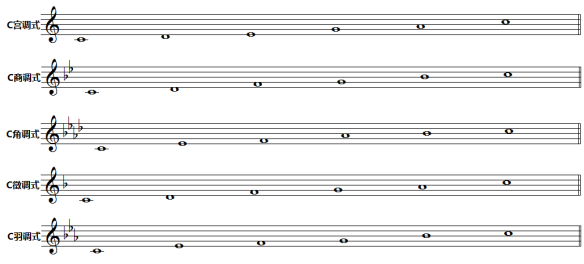 任意一组同主音民族调式有五种,例如:C宫调、C商调、C角调、C徵调、C羽调。