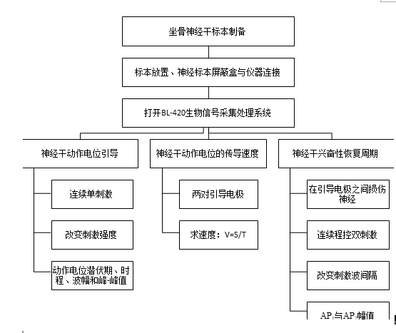 2.技能目标:能熟练应用细胞外电刺激诱发神经干动作电位,并正确应用BL-420生物信号采集与处理系统记录神经干复合动作电位。