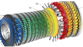 为了得到高的热循环效率,需要发动机压气机必须拥有足够高的增压比!但是,轴流压气机的每一级的增压能力是有一定限度的,因此,欲达到此目的,轴流压气机必须做成多级的形式结构!