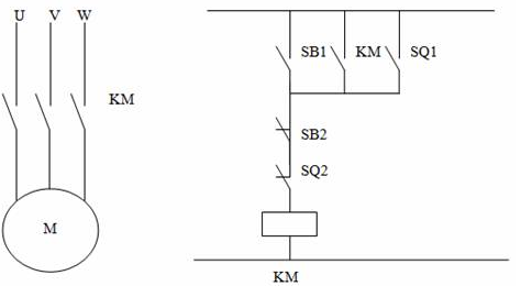 点动控制线路如下图所示,其工作过程为:合上刀开关QK,作好起动准备;按按钮SB,接触器线圈通电,主触头闭合,电动机M直接起动。当松开SB时,触头位,删线圈断电,主触头断开,电动机停止转动。