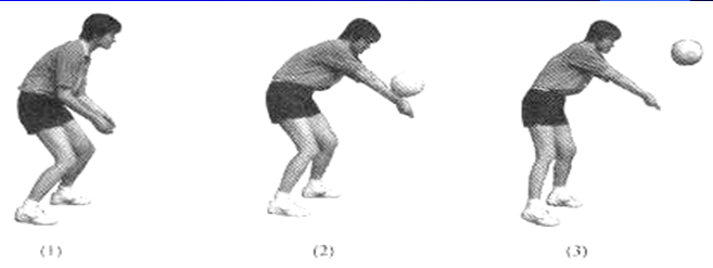 2、垫抛球。练习时分成两人一组,一人抛球,一人垫球。