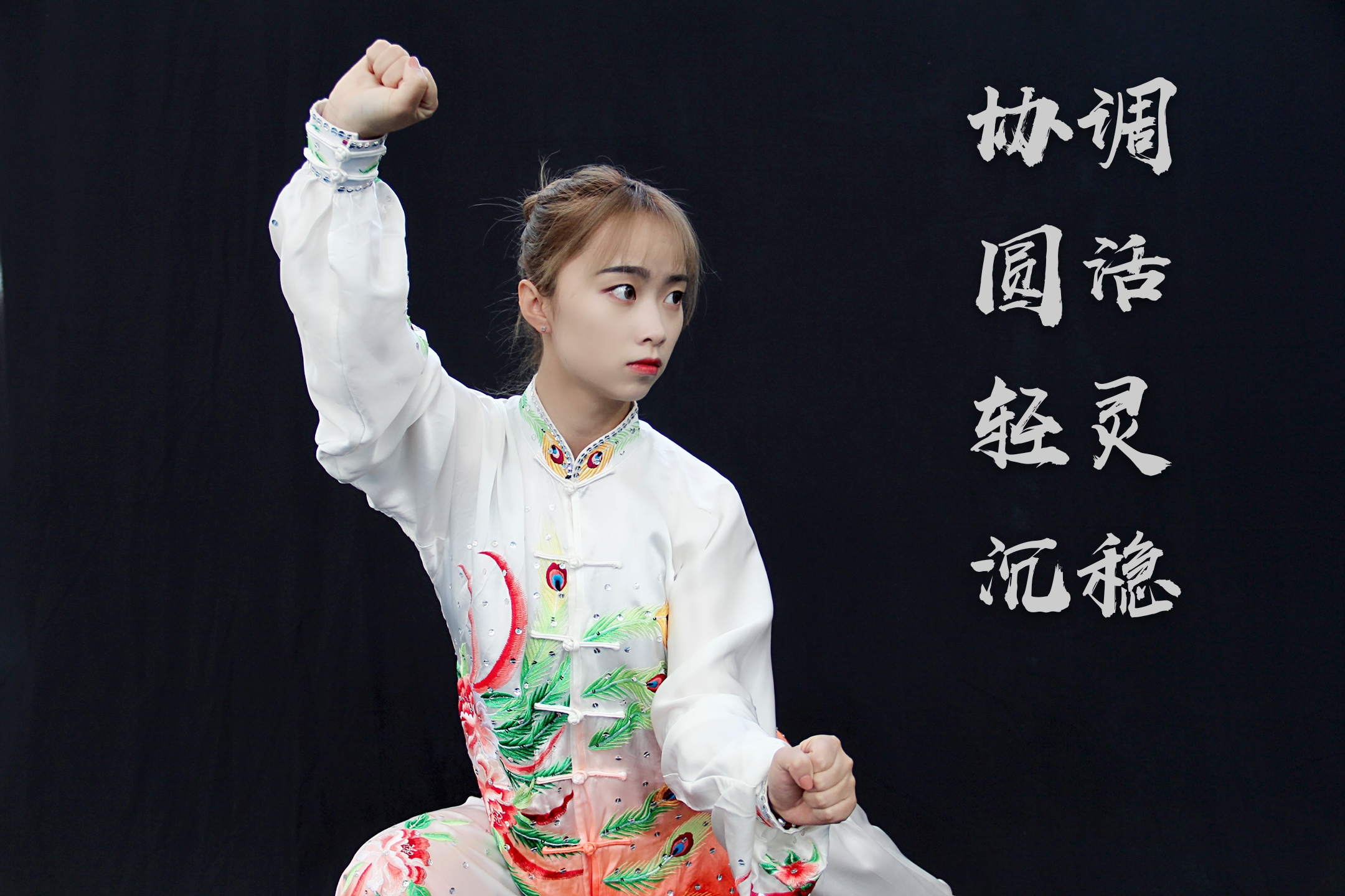 身型:含胸拔背、闾尾中正、下颚微收、沉肩坠肘;