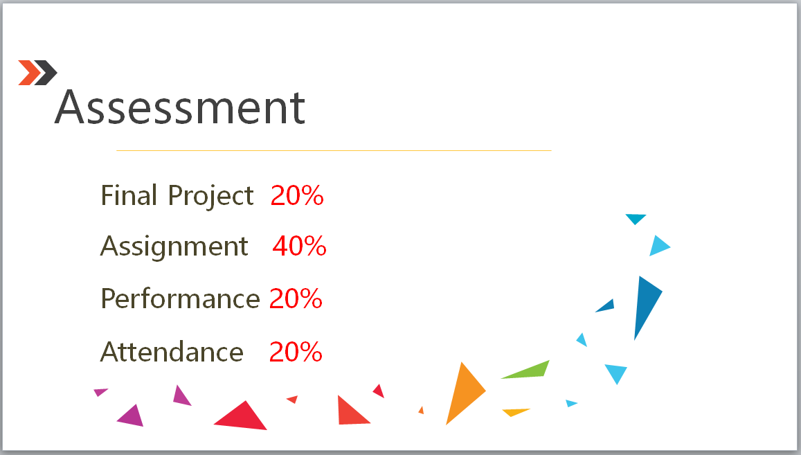 最后期末考察将以一个具体项目形式出现,并依据项目成果打分,占20%。