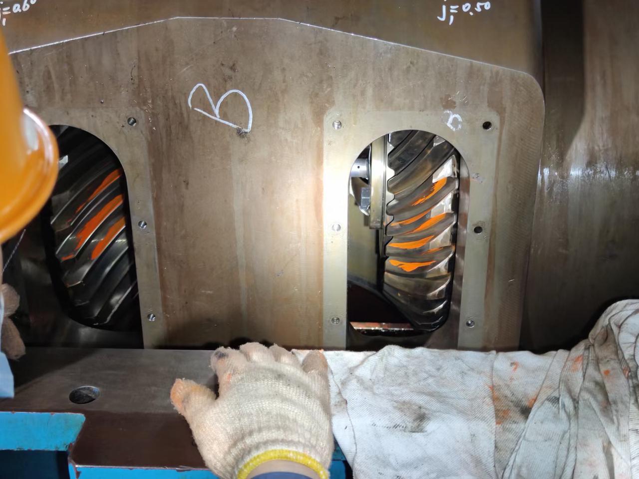 对于齿轮啮合调整,需要考虑的因素特别多,比如箱体的水平度、传动轴的径向圆跳动、同轴度、轴承的游隙等等;当你采用接触斑点和啮合间隙方式无法更好的得到具体影响因素的时候,就可以采用压铅的方式,压铅后的结果可能也会受到啮合间隙、水平度等等的影响,但是可以大大缩小排查的范围。例如箱体呈轻微v字型,传动轴齿轮端就会呈现头重脚轻的现象,当采用大游隙的轴承时,对于啮合效果就会大打折扣。