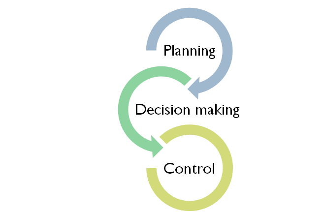 The main functions that management areinvolved with are planning, decision making and control.