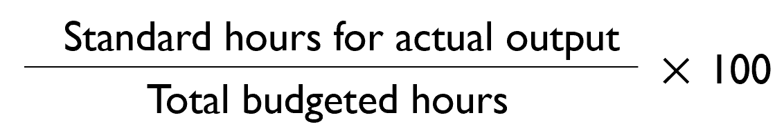 The labour production volume ratio (‘activity’ratio) compares the number of hours expected to be worked to produce actualoutput with the total hours available for work (full capacity or budgeted hours).