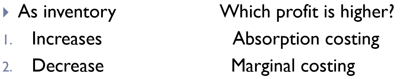 This is because fixed overhead broughtforward in opening inventory is released, thereby increasing cost of sales andreducing profits.