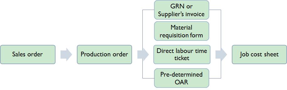 }Each job is identified separately and the costs are identified for this specific job, coded to it and recorded as job costs. Effectively the job is the cost unit.