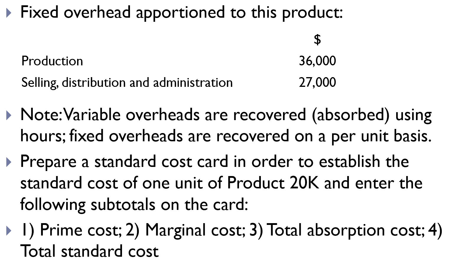 }The actual costs incurred are measure dafter the event and compared to the pre-determined standards.