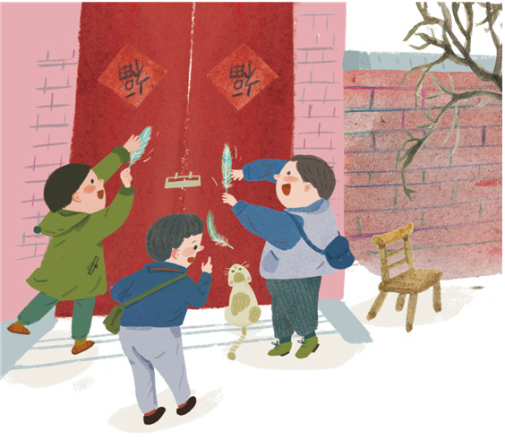 我们玩的鸡毛游戏很简单,几个小伙伴,每人选一根自己最满意的鸡毛,找上谁家的大门,把鸡毛贴上去,一只手按着鸡毛根部,另一只手一下一下抚摩鸡毛,使它“发电”,贴在门上面。然后把手松开,谁的鸡毛贴的时间长,谁就是赢家。