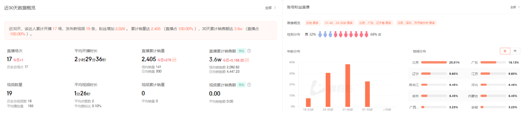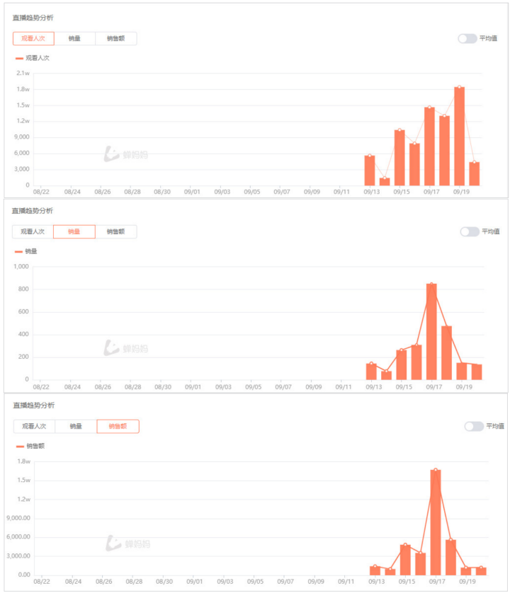 客单价 | GMV/成交人数可以得出客单价,该数据能反映平均每个观众的成交金额 数值越大,说明观众的质量越高,越有购买力 |