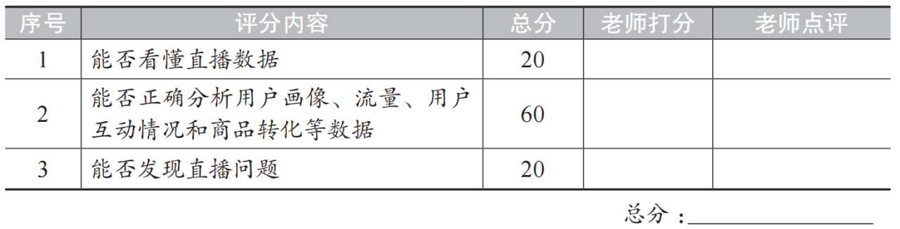 依据脚本完成60分钟直播。直播时间分配合理,能在规定时间内完成直播活动;能迅 速并有效地处理直播过程中的突发事件;直播讲解具有激情,能带动直播间气氛,可调动观众参与互动活动,并引导观众下单。