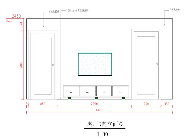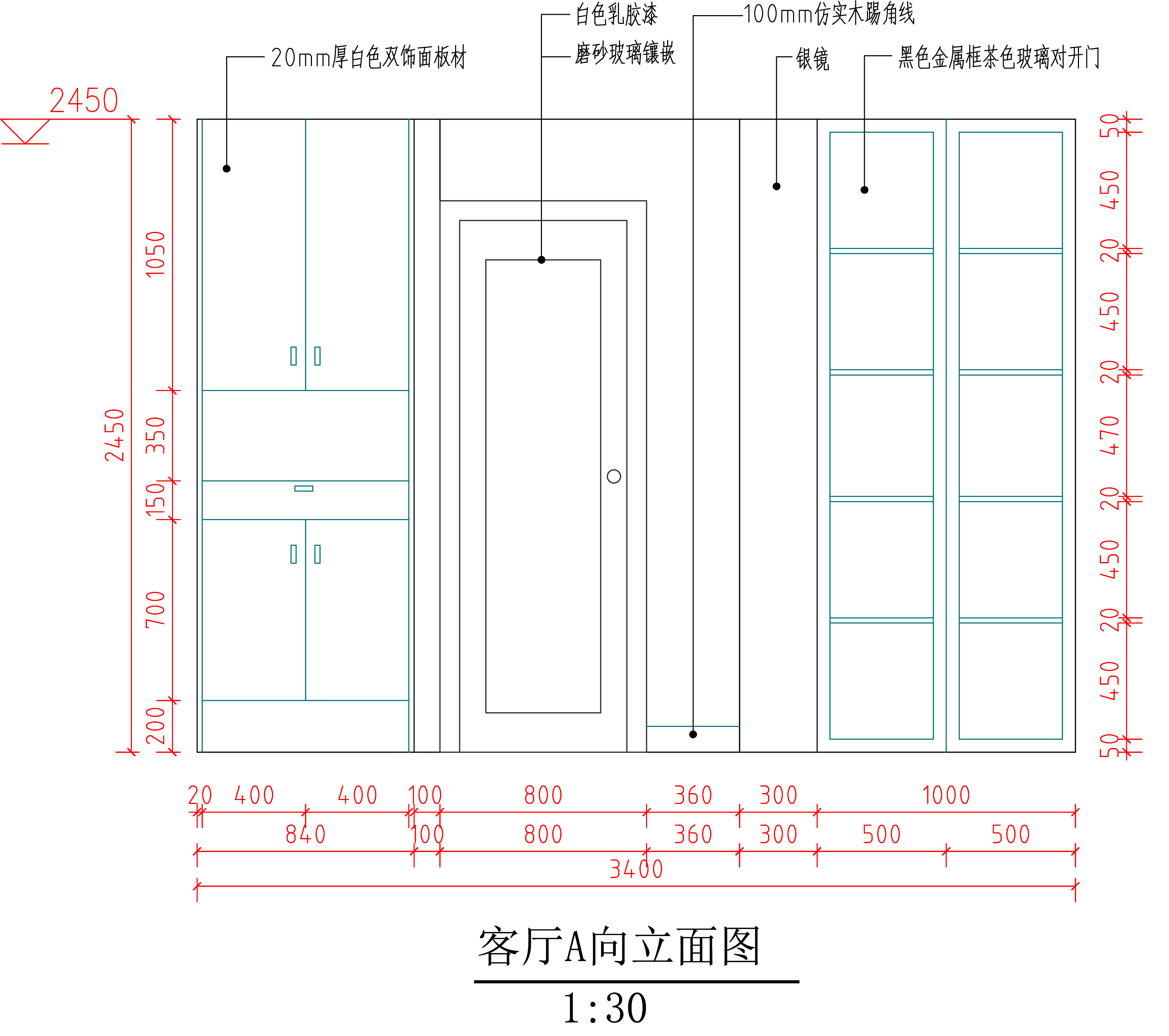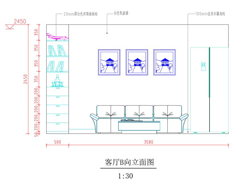 通过学习,掌握立面图的基本编制思路,并通过对给定的客厅平面布置图的分析,确定客厅立面图的绘制内容,训练并提高空间转换能力,掌握立面图的绘制技巧及相关标准,了解家居装饰工程中客厅装饰中常用的材料名称、用途及性能等指标,能规范绘制家居装饰立面图纸。
