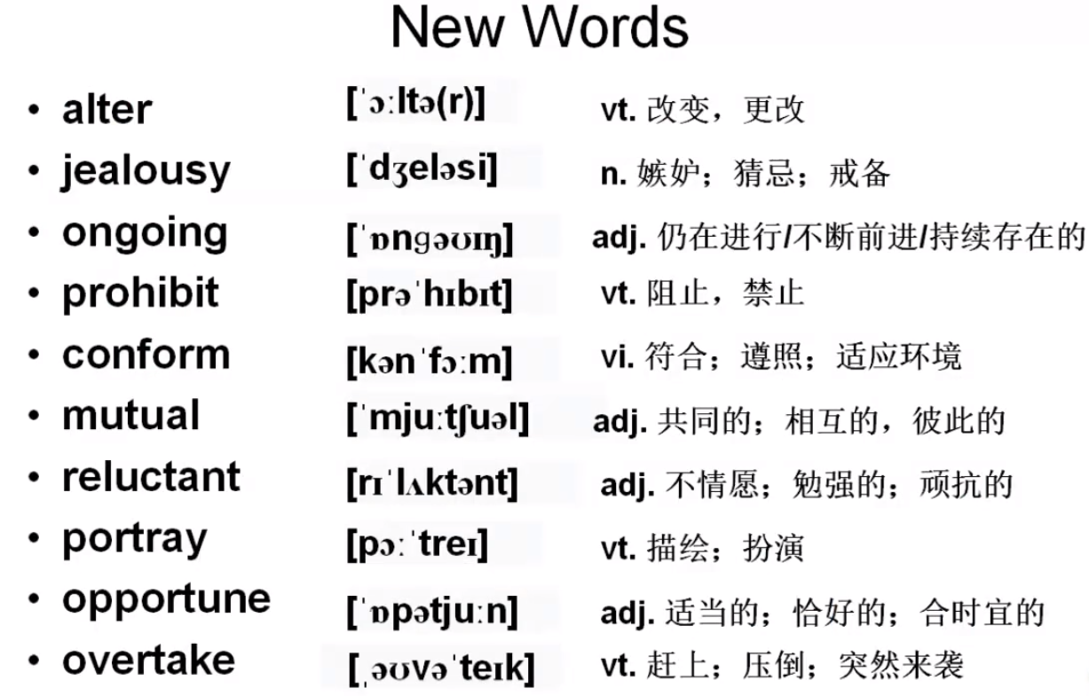1. 初探alter, jealousy, prohibit 等重点词汇在语境中的应用。
