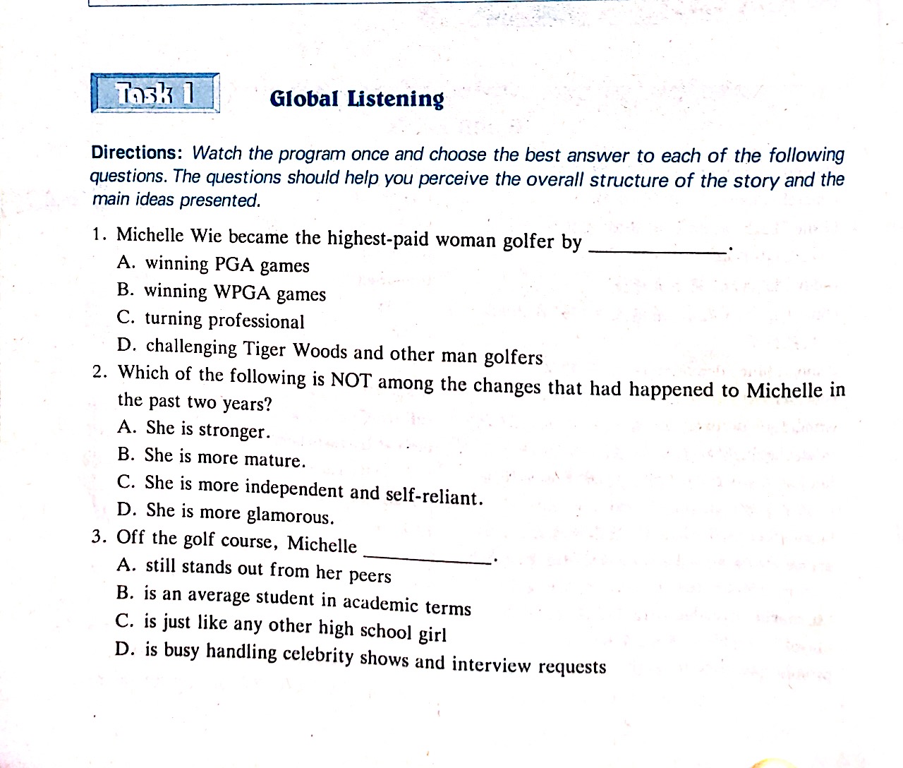 • 2.8 课后任务Post-Listening 1: Listening and Discussion