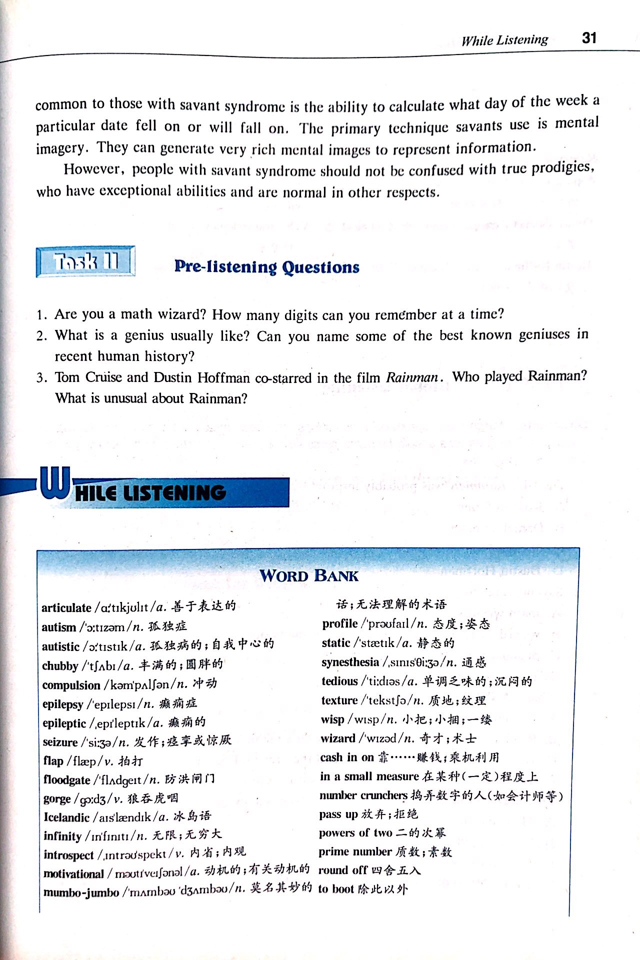 • 1.3 翻转课堂:课前任务Pre-Listening 2 : Lead-in & Warming up task (A)