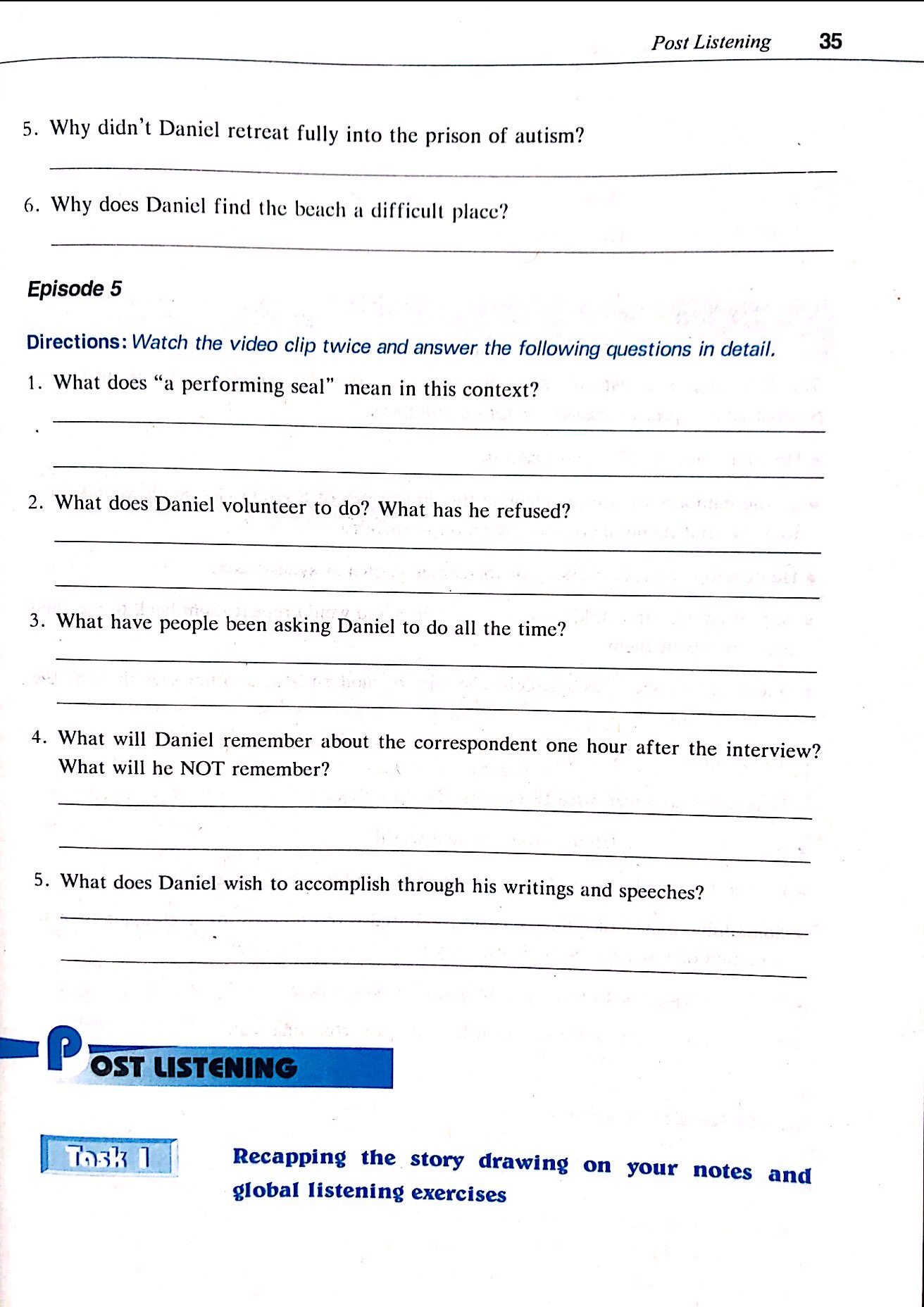 • 5.6 课后任务Post-Listening 1: Listening and Discussion