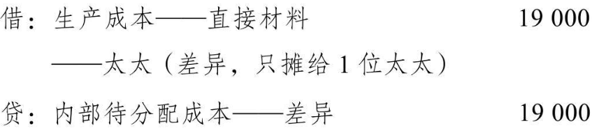 (1)包年送花费的差异分摊(只摊给1位太太,因此不涉及多成本对象间根据成本动因分摊差异的问题):