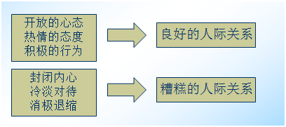 开放的心态、热情的态度和积极的行为,才会拥有良好的人际关系。然而,当前的大学生们往往相反,他们封闭自己的内心世界、冷淡面对交往、消极退缩,这样所获得的是极为糟糕的人际关系。