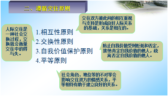 从技术技巧层面上看,人际交往是一门很深的学问,值得每个人不断摸索。总体来看,我们大学生开展人际交往应把握以下方面。