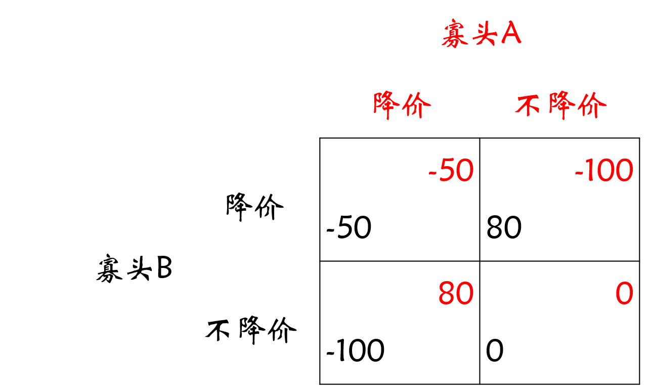 假设彩电市场有两个寡头A、B,均面临降价与不降价的选择