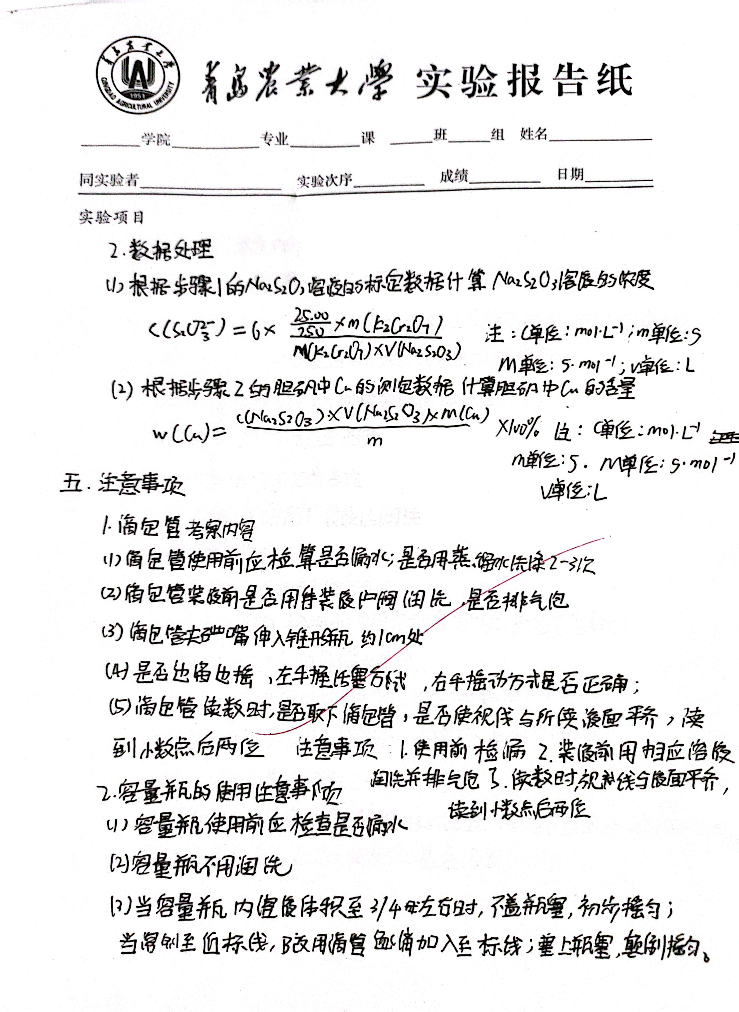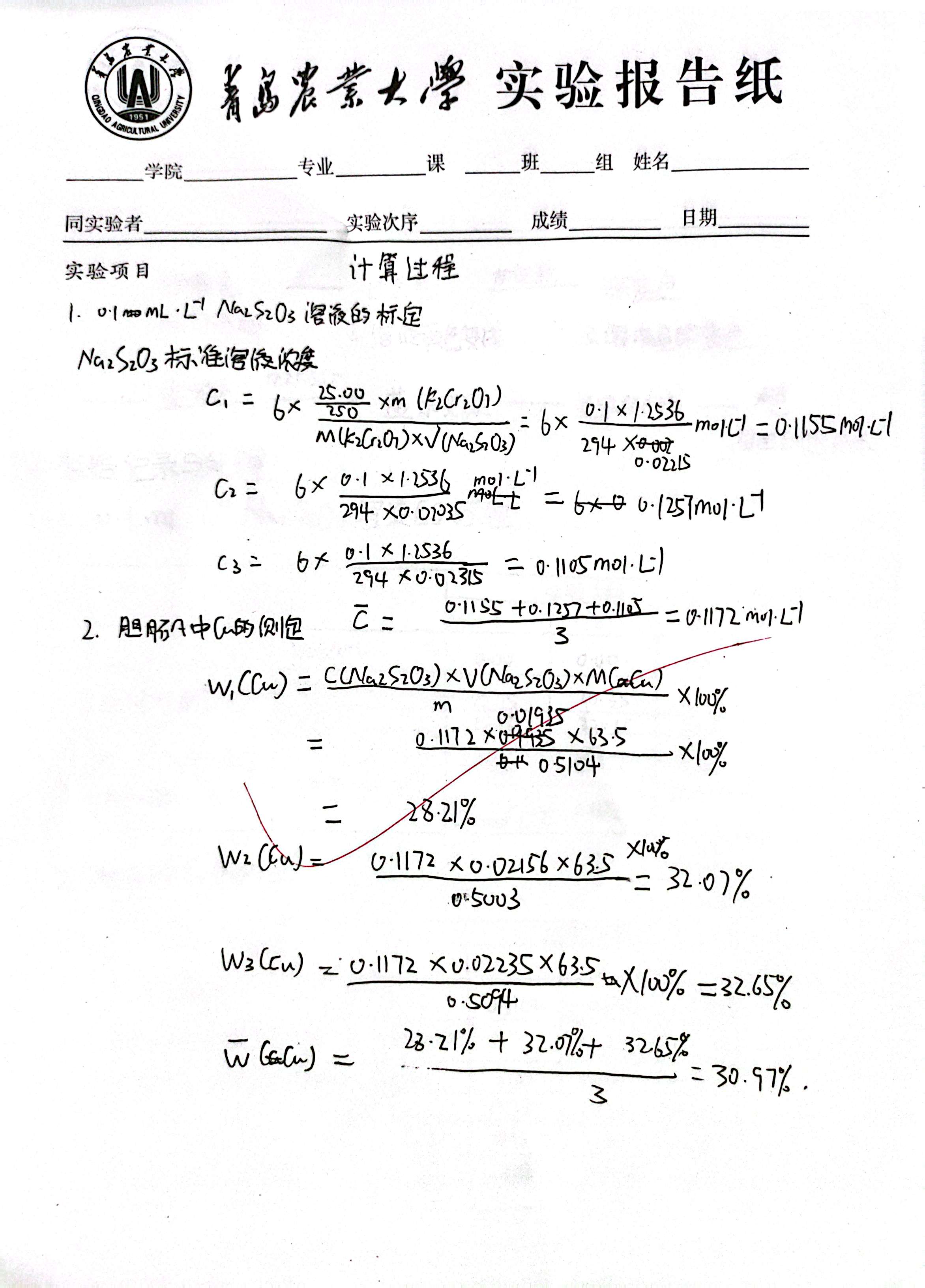 4、实验数据记录和实验结果必须以表格形式展示,还需包含必要的计算步骤。