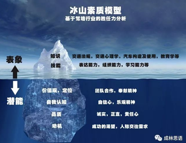 “素质冰山”职业素质冰山理论指一个人的“自我”就像一座冰山一样,我们能看到的只是表面很少的一部分——行为,而更大一部分的内在世界却藏在更深层次,不为人所见,恰如冰山。包括行为、应对方式、感受、观点、期待、渴望、自我七个层次。