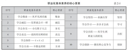 2.了解职业化素养的重要作用及核心要素,