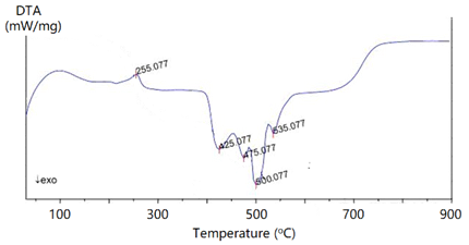 在试样和参比物没有发生物理和化学变化时,无热效应发生,试样池和参比池的温度相等,示差热电势始终等于一个定值,此时记录的DTA曲线为一直线,我们称没有热效应的DTA曲线为基线。