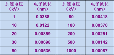 因此,电子作为光源时,nsinα≈ 10-2r ≈ 61λ。电子在E为20kV时,波长约为8.6×10-3nm;在E为100kV时,波长约为3.7×10-3nm,对应的分辨率为0.52nm和0.23nm。